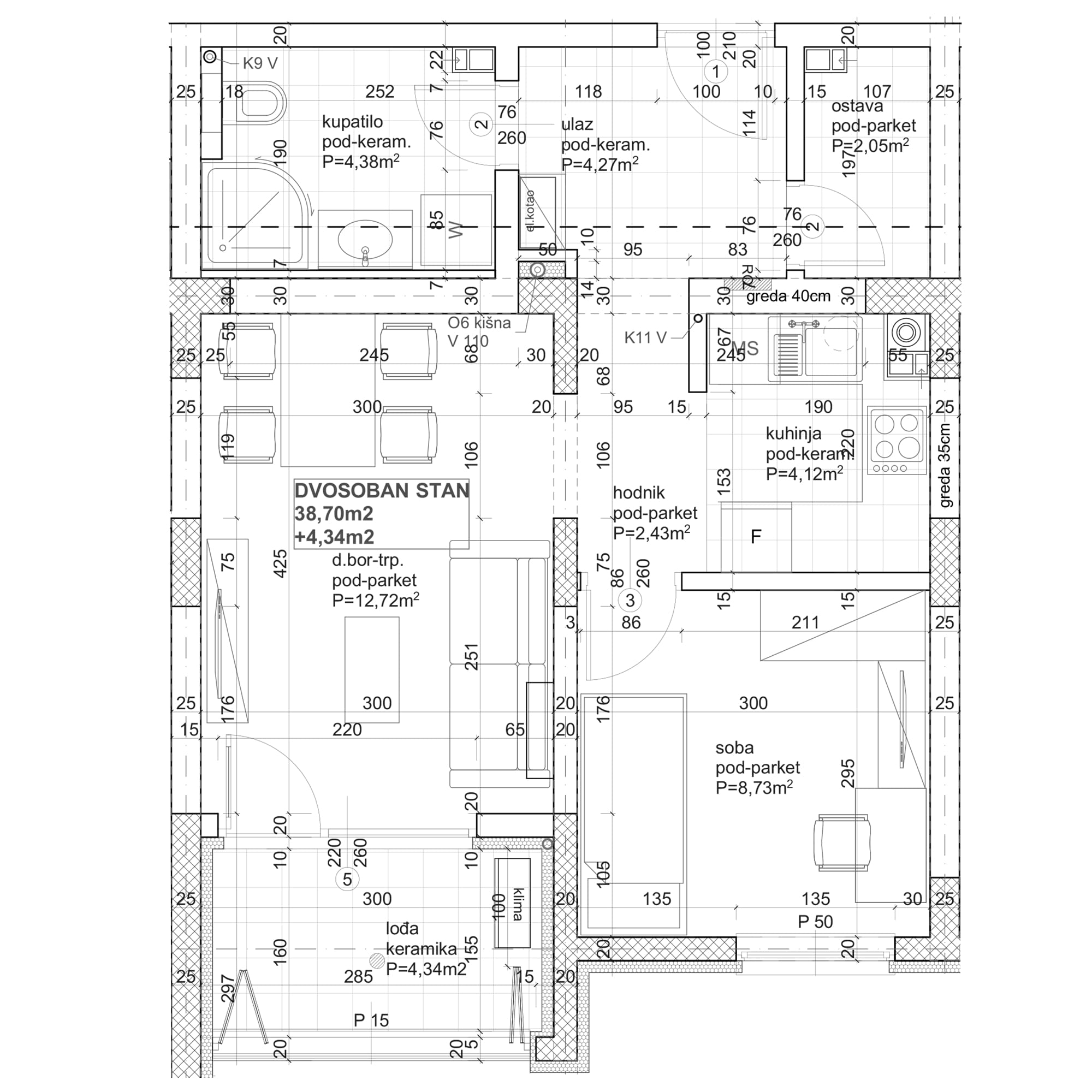 Dvosoban stan – 43,04 m2 (38,70 m2 + 4,34 m2)