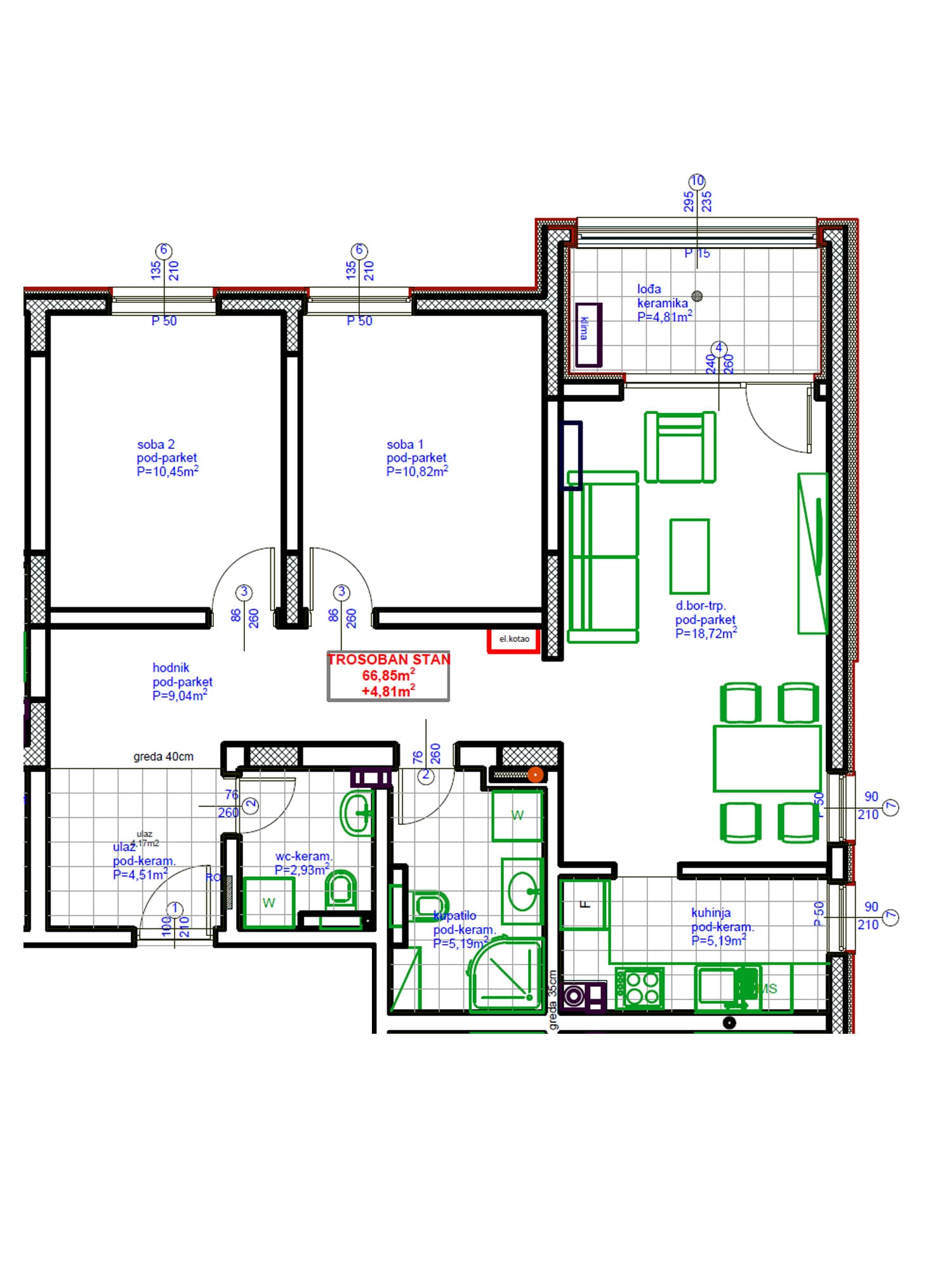 Trosoban stan – 71,66m2 (66,85m2 + lođa 4,81m2)