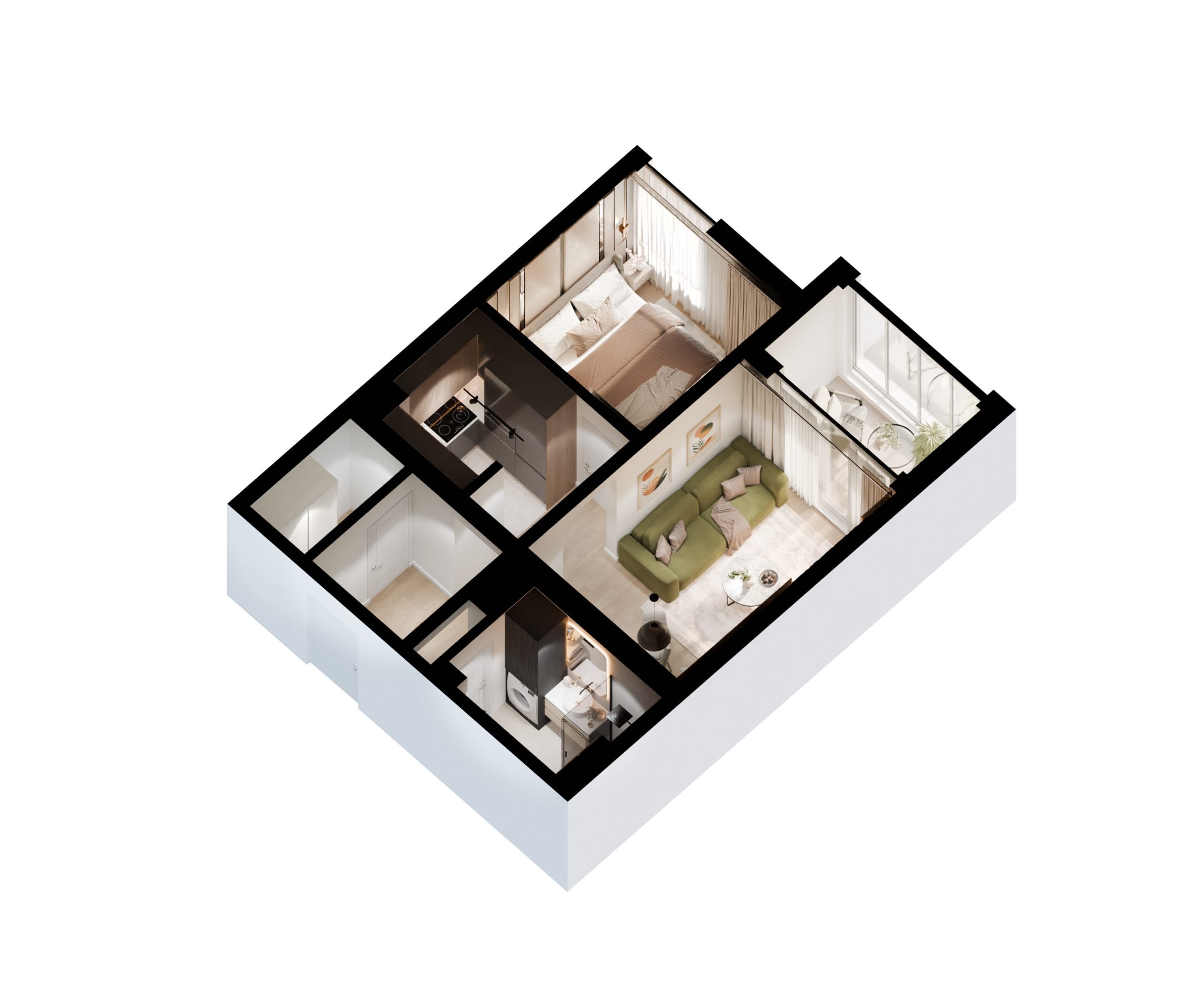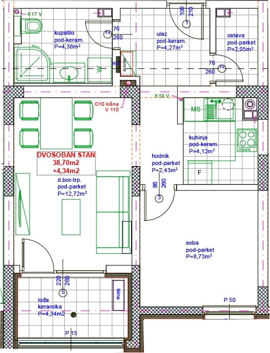 Dvosoban stan – 43,04 m2 (38,70 m2 + 4,34 m2)